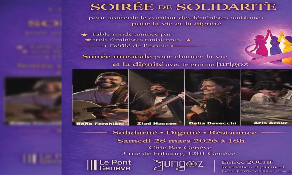 L’association Le Pont Genève organise le Samedi 28 mars 2026 une soirée de soutien aux féministes tunisiennes. Au programme : table ronde, défilé symbolique et concert,...